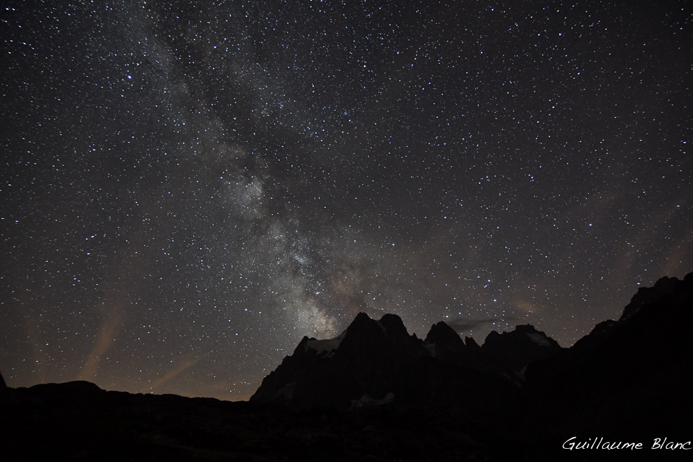 La Voie Lactée est absorbée par le glacier des Violettes au mont Pelvoux.